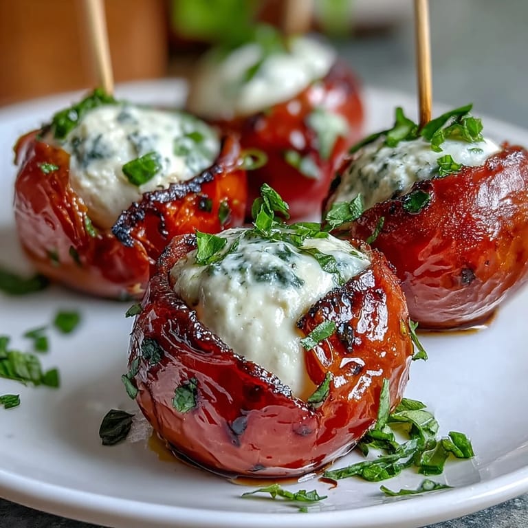 The beauty of these skewers lies in their simplicity and the quality of ingredients. Fresh bocconcini—those tender mini mozzarella balls—pair perfectly with the sweet acidity of cherry tomatoes, while aromatic basil adds a peppery, herbaceous note. A drizzle of extra-virgin olive oil and balsamic glaze elevates these simple ingredients into something truly special, finished with a sprinkle of flaky sea salt and freshly ground black pepper that brings all the flavors together beautifully.