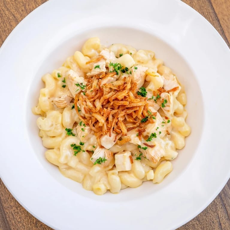 Optional toppings include chopped fresh parsley and crispy fried onions or bread crumbs for added texture.