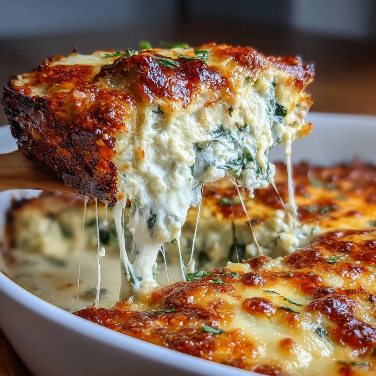 Save Indulge in the ultimate keto comfort food with this Spinach Artichoke Chicken Bake. Inspired by everyone's favorite dip, this casserole transforms the creamy appetizer into a satisfying main course that's both decadent and nutritious. Tender chicken breasts serve as the perfect canvas for a rich, cheesy spinach and artichoke topping that melts into pure bliss in the oven. The combination of cream cheese, sour cream, and two types of cheese creates that irresistible stretch when you take a bite, while keeping carbs to a minimum.