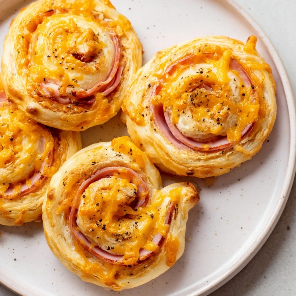 Save Flaky, golden pastry spirals filled with savory ham and melted cheese—perfect as an appetizer, snack, or party finger food.