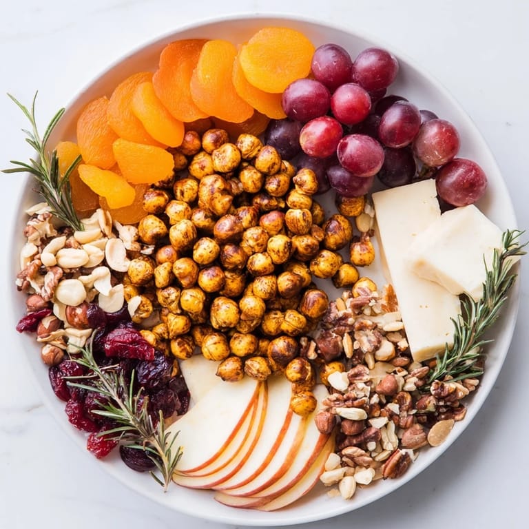 - Arrange roasted acorns, toasted nuts, dried fruits, grapes, seeds, cheeses, and apple slices attractively on a large platter.