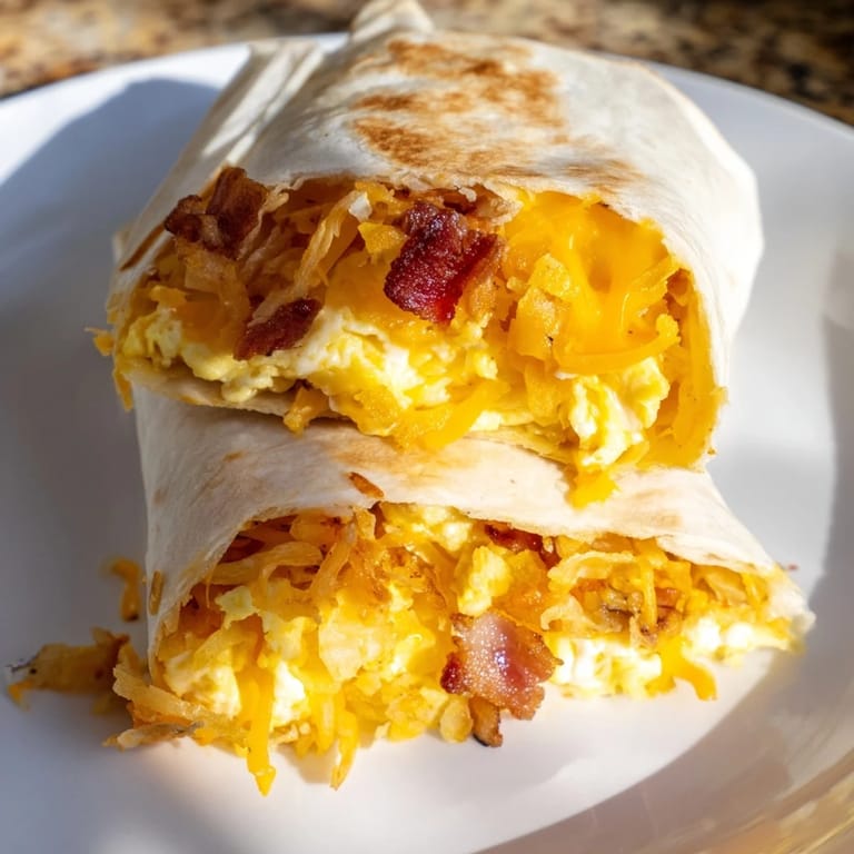 These B.E.C. breakfast bites combine crispy hash browns, savory bacon, fluffy scrambled eggs, and melted sharp cheddar cheese all wrapped in tender homemade tortillas. The tortillas are handmade, cooked until lightly browned, and then filled with the cheesy egg and bacon mixture. After rolling into bite-sized portions, they are brushed with butter and baked until golden and warm, making for a perfect grab-and-go morning treat. Variations include vegetarian options by skipping bacon or substituting with mushrooms or veggie sausage, and optional additions like chives or jalapeños add extra flavor. Ideal for prepping ahead and reheating.