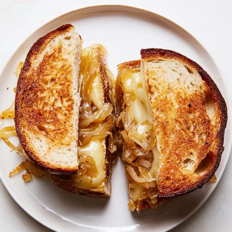 Save There's something about a grilled cheese sandwich that stops time in a kitchen. Years ago, I was tasked with making lunch for friends who had spent the morning helping me paint my apartment, and I wanted to offer something better than the usual. I caramelized some onions slowly, almost meditatively, while they dried and laughed in the next room, and by the time those onions turned deep golden and sweet, the whole place smelled like a French bistro. Gruyère melted into those onions like it was always meant to be there, and when everyone bit into those sandwiches, something shifted—they weren't just hungry anymore, they were impressed.