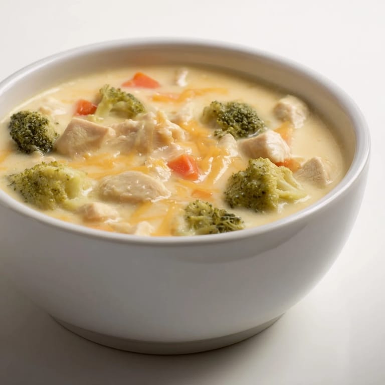 Save The first time I made this soup, it was snowing sideways and I had nothing but a rotisserie chicken, some sad broccoli florets, and a block of cheddar that needed using. My roommate walked through the door, shook off her wet coat, and literally said what is that smell before even taking off her boots.