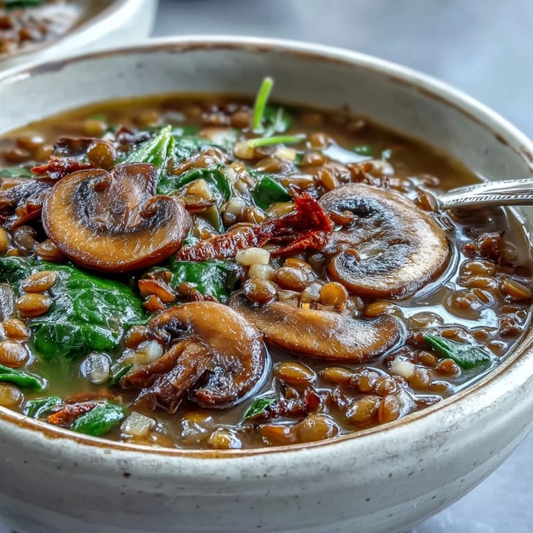 Save There's something about a soup that fills more than just your stomach—it's the kind of meal that wraps around you on a cold afternoon and somehow makes sense of things. I discovered this double lentil and mushroom barley soup on a Tuesday when I had nothing in the pantry but good intentions and a bunch of ingredients that seemed to belong together. The moment the broth hit the pot, the kitchen filled with this deep, earthy warmth that had my roommate asking what smelled so good before I'd even finished chopping the collard greens. What started as an experiment became the soup I make whenever I need something that feels both nourishing and honest.