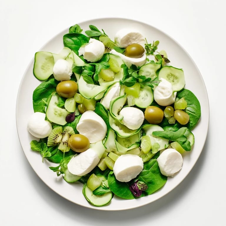 Save I discovered this salad on a sun-drenched afternoon in a little garden café, where the chef arranged vegetables like an artist composing a landscape. The moment I saw that creamy white mozzarella river winding across the emerald greens, I knew I had to recreate it at home. There's something magical about a salad that looks like edible art—it transforms a simple lunch into a moment worth savoring.