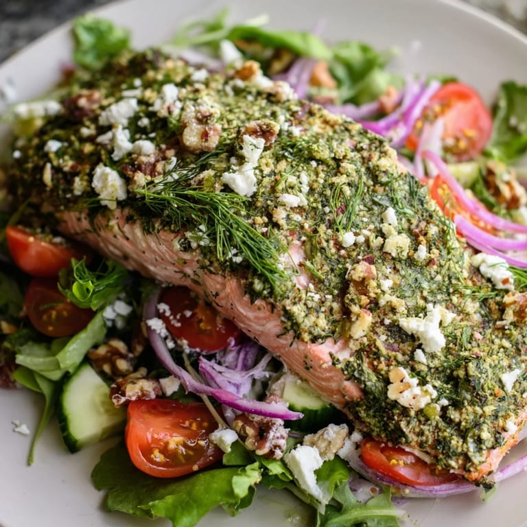 I've swapped in trout when salmon wasn't calling to me, and it works beautifully with the herb crust. Add sliced avocado if you want richness, cooked quinoa if you want substance, or crumbled goat cheese instead of feta if you're feeling different. The skeleton of the recipe stays sturdy enough to handle these swaps.
