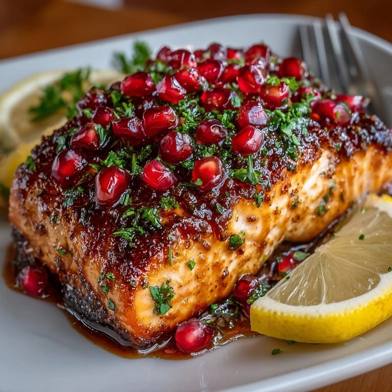 Save This vibrant salmon recipe gives you a restaurant-style meal in under half an hour with a glossy pomegranate balsamic glaze that feels both healthy and celebratory. The glaze brings a perfect harmony of tang and sweetness to buttery salmon fillets and the juicy pomegranate arils and herbs add that last pop of freshness and color.