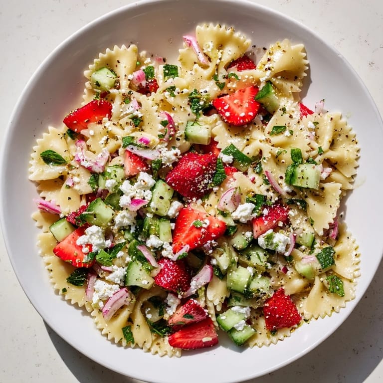 Save I discovered this dish by accident on a humid July afternoon when my strawberry patch had overflowed and I was standing in the kitchen wondering what to do with three punnets of fruit. A friend called just as I was about to make yet another jam, and she casually mentioned her recent trip to London, how she'd had berries and cream at Wimbledon. That sparked something—why not pasta? Within minutes, I'd tossed together what I had: soft feta, cool yogurt, a twist of lemon. The first bite was like summer catching itself mid-season.