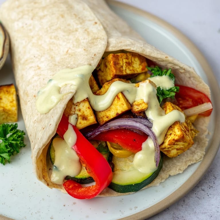 - Warm wraps or pita breads. Fill each with roasted tofu and vegetables. Drizzle with tahini-yogurt sauce and sprinkle with fresh parsley.