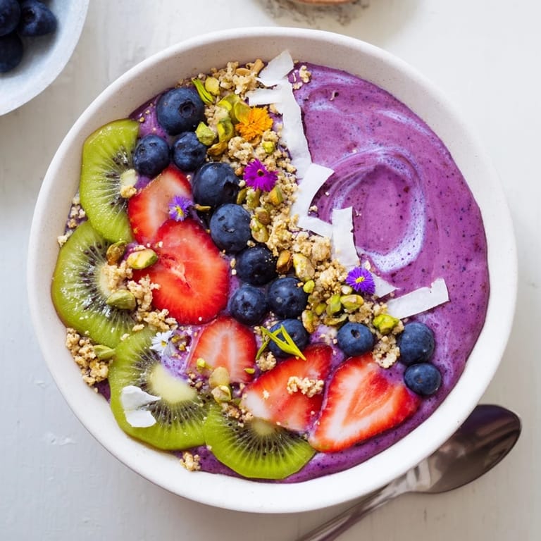 Save Vibrant Smoothie Bowls with Unexpected Twists are a colorful, nutrient-packed breakfast treat that brings together creative flavor combinations and fun textures. The blend of purple yam and pistachio creates an eye-catching bowl perfect for a truly delightful morning.