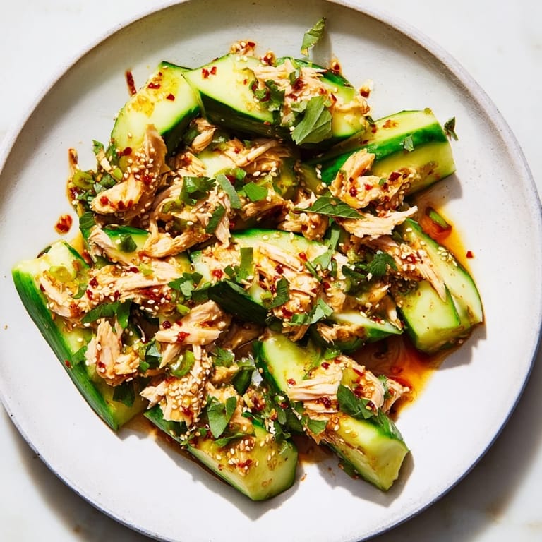 One of my favorite discoveries is that this salad is incredibly forgiving. I've added crunchy peanuts when I wanted more texture, thrown in sliced radishes for extra brightness, and even experimented with poached shrimp when I didn't have rotisserie chicken on hand. The core of the dish—the smashed cucumbers in that killer dressing—is strong enough to carry whatever protein or garnish you want to add to it.