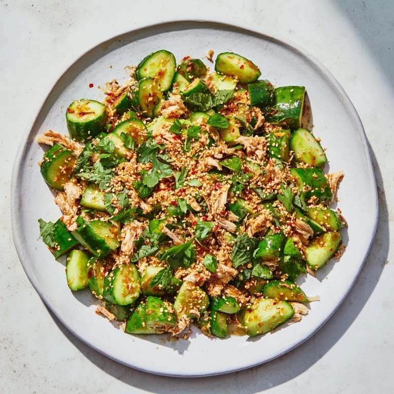 There's something about the simplicity of this salad that caught me off guard. I was scrolling through my phone late one night when I saw someone smashing cucumbers with the flat of a knife, and something about that casual violence against produce made me laugh. The next day, I tried it myself, and the satisfying crack as the cucumber split open felt oddly therapeutic. Paired with rotisserie chicken from my favorite market and a drizzle of sesame oil, it turned into one of those meals that feels both effortless and impressive.